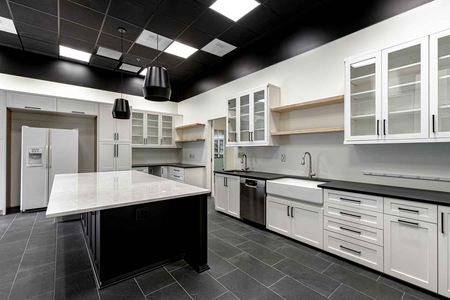 Inside, the space was thoughtfully programmed to support a range of functions, including a large open laboratory, kitchen, large and small conference rooms, private offices, open work areas, media and storage rooms, as well as dedicated contract, production, and tissue rooms. The result is a dynamic, future-ready environment that supports both technical operations and team collaboration.