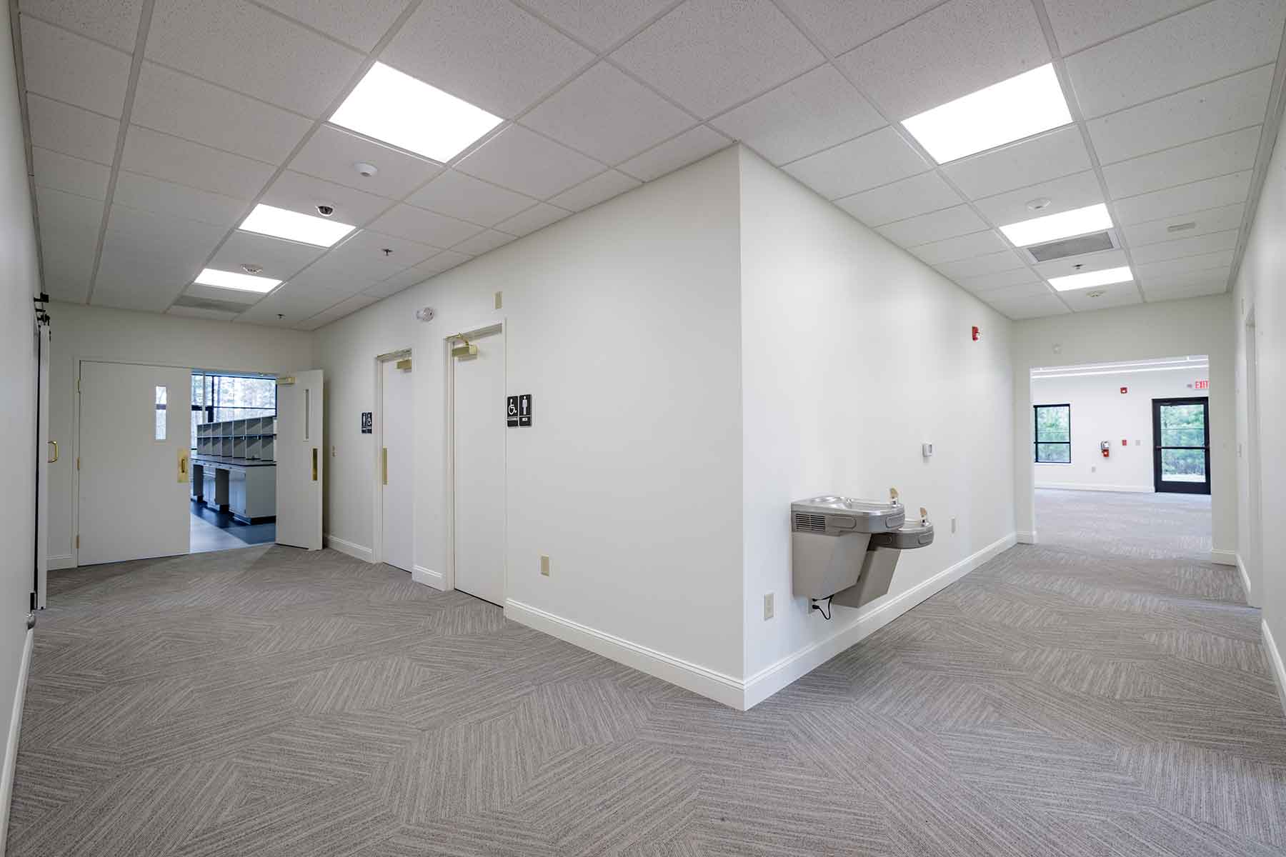 The scope included the creation of a mezzanine level to support future expansion, installation of a generator to ensure operational continuity, and a complete rework of the building entrance. New windows were introduced to enhance natural light, while extensive landscaping elevated the exterior presence of the facility.
